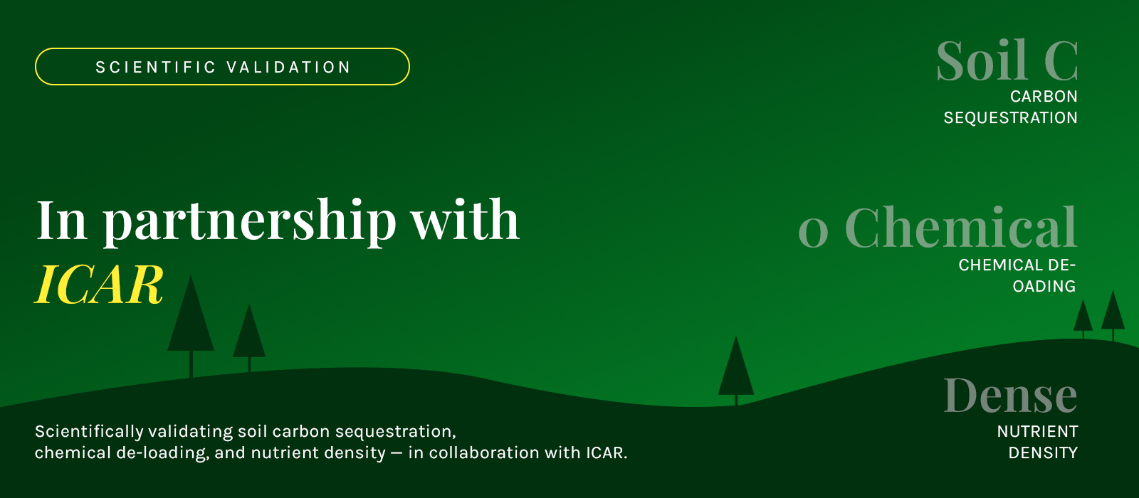 Evidence-based agriculture and animal husbandry. Monitoring soil carbon sequestration, chemical de-loading and nutrient density with research institutes.